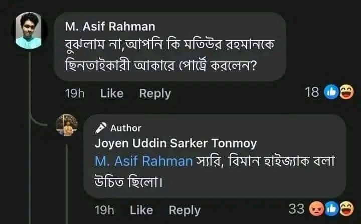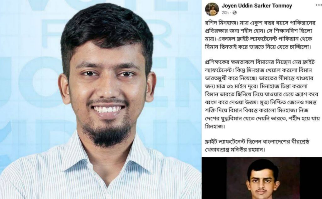 এছাড়া বীরশ্রেষ্ঠ মতিউর রহমান যে পাকিস্তানী পাইলটের সাথে যুদ্ধ করে বীরত্ব দেখিয়ে বিমানকে পাকিস্তানে যেতে না দিয়ে বাংলাদেশের কাছে নিয়ে আসতে চাচ্ছিলেন, সেই পাকিস্তানী পাইলটকে সে জাতীয় বীর শহীদ হিসেবে তুলে ধরে ফেসবুকে পোস্ট দিয়েছিল।